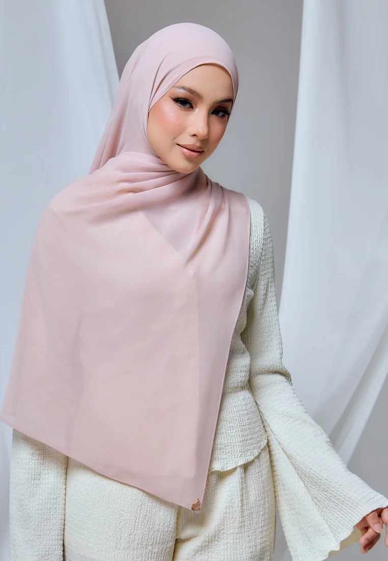 Embrace elegance with the Qalbu Shawl Series, crafted from see-through chiffon for a soft, lightweight feel. This collection is designed for versatility and style, enhanced by a signature Mayang By Anntsya metal tag. With a generous measurement of approximately 2M x 0.6M, this shawl offers ample styling options for any occasion.